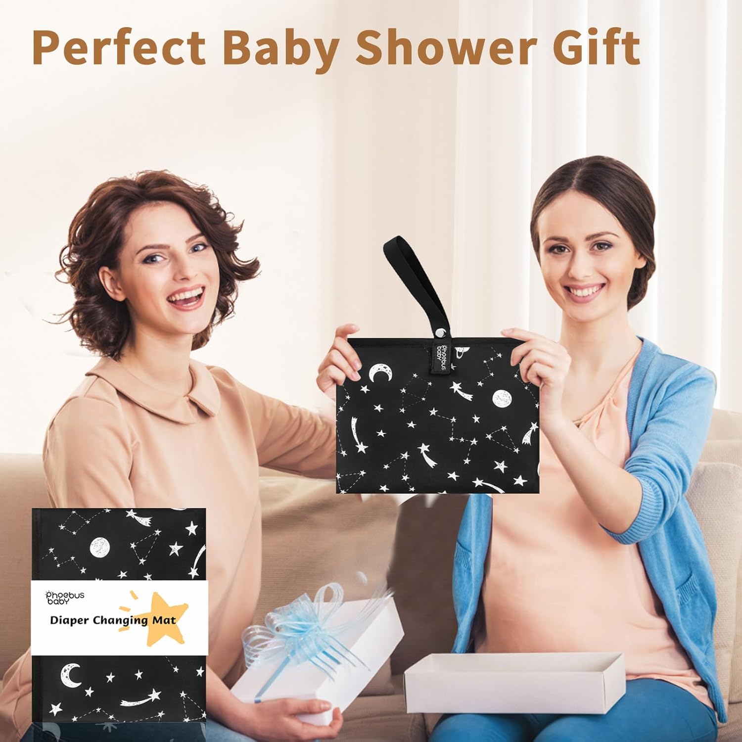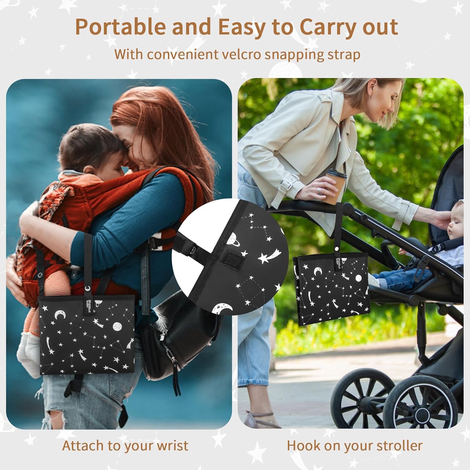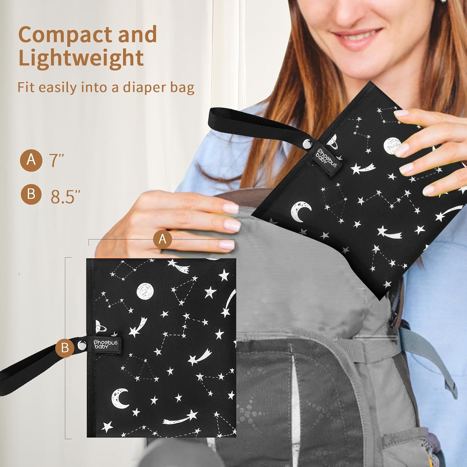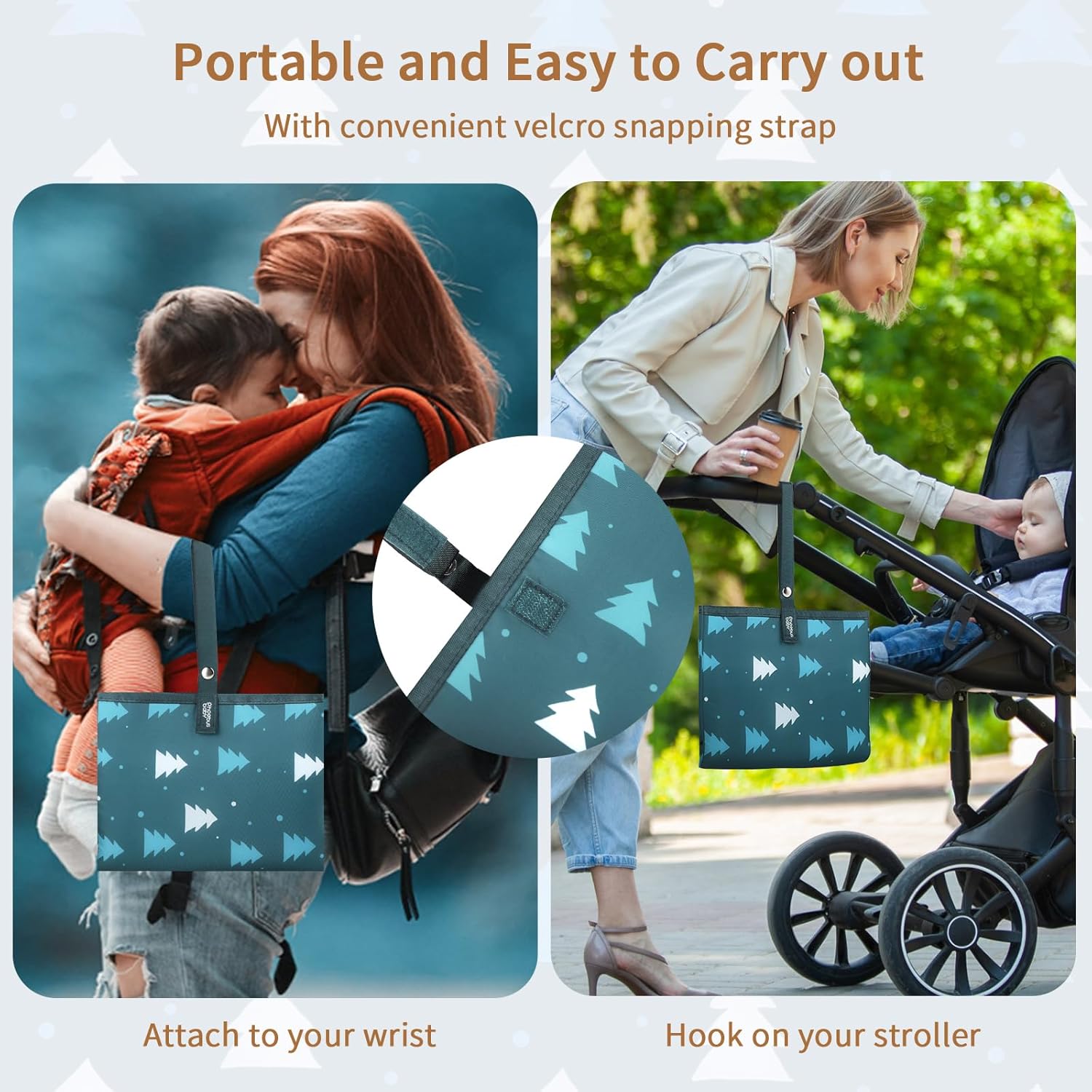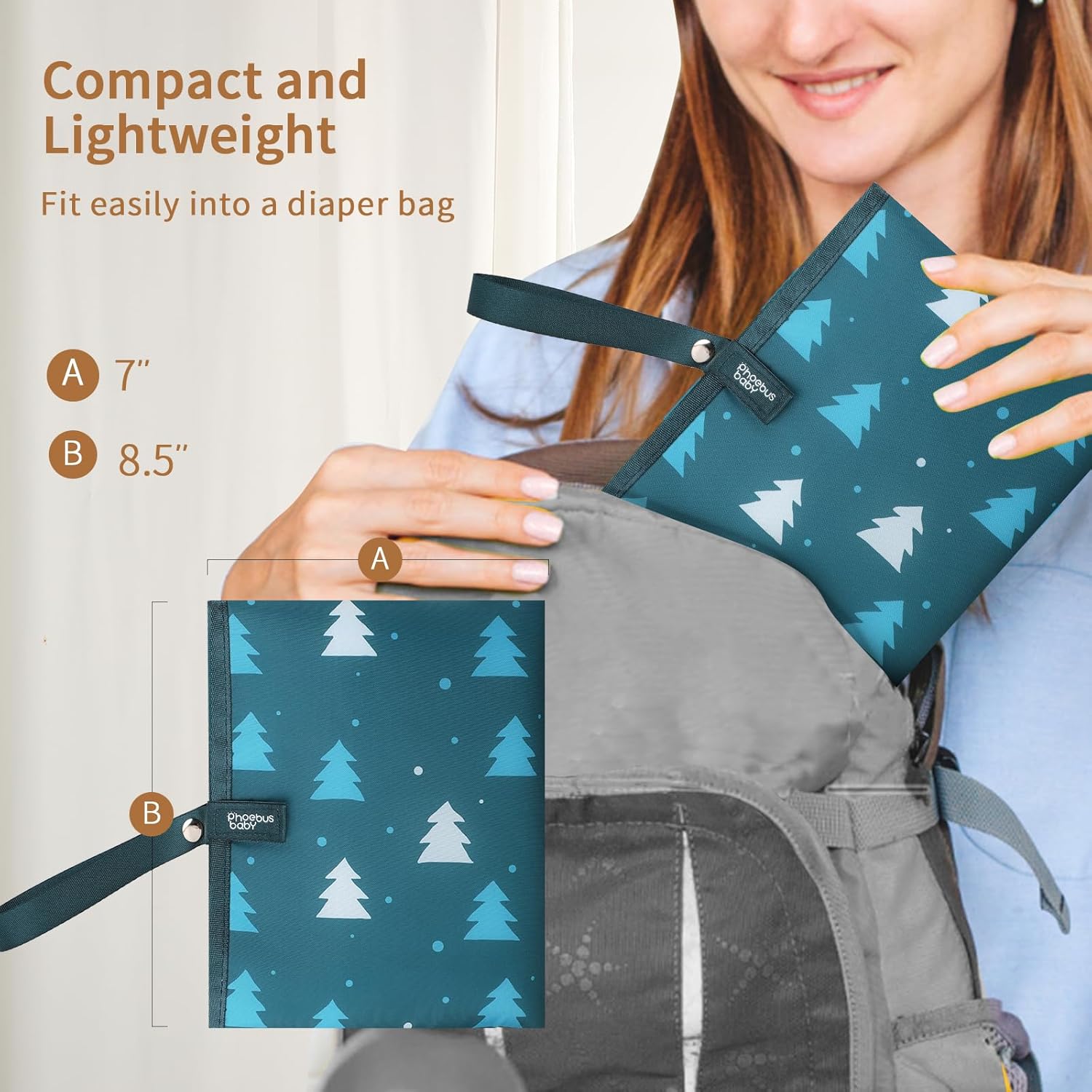 Portable Diaper Changing Pad for Baby - Waterproof Compact Changing Mat with Wrist Strap - Wipeable Travel Changing Pad for Diaper Bag(Pink Flowers)